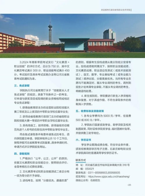 學(xué)校名稱:石家莊郵電職業(yè)技術(shù)學(xué)院 2024年單招招生簡(jiǎn)章