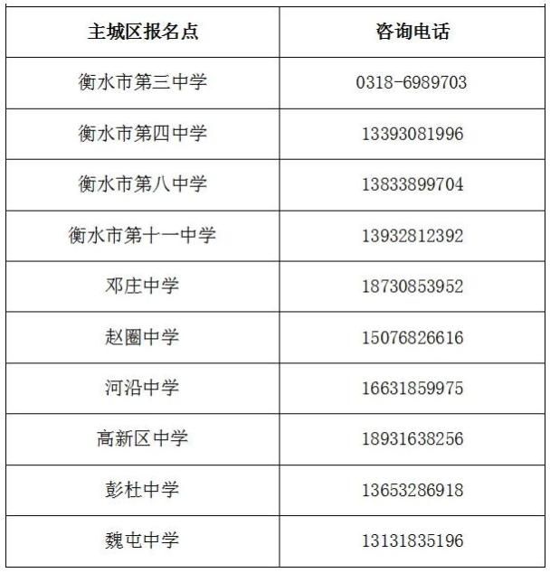 1.中考報名條件由各縣市區(qū)根據(jù)《衡水市教育局關于做好2025年初中學業(yè)水平考試工作的通知》(衡教基〔2025〕8號)并結合本地實際合理確定。報考人員原則上應具有報考地戶籍或初中學籍(學歷)。主城區(qū)(桃城區(qū)、高新區(qū)、濱湖新區(qū))的報名工作在桃城區(qū)教育局統(tǒng)一領導下進行。