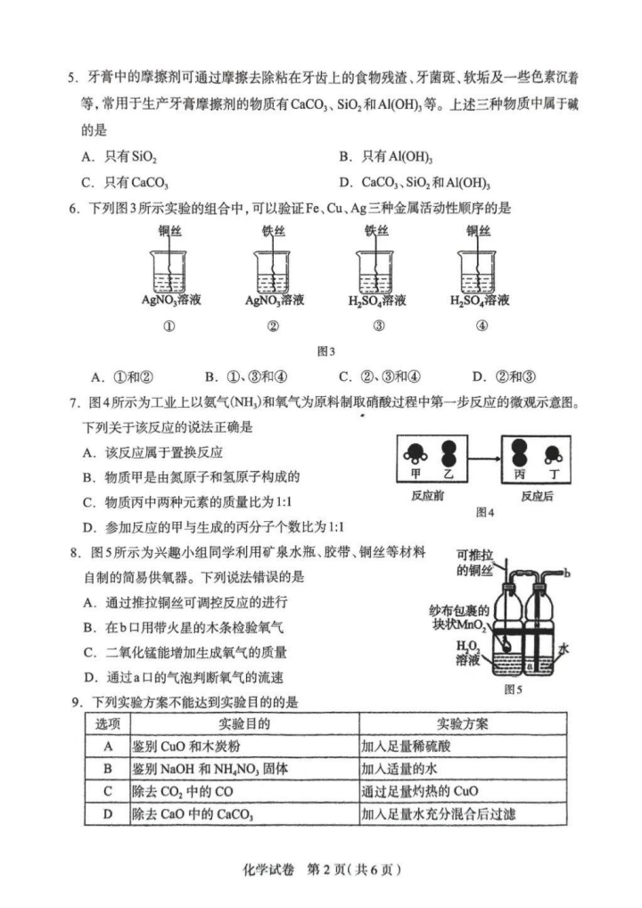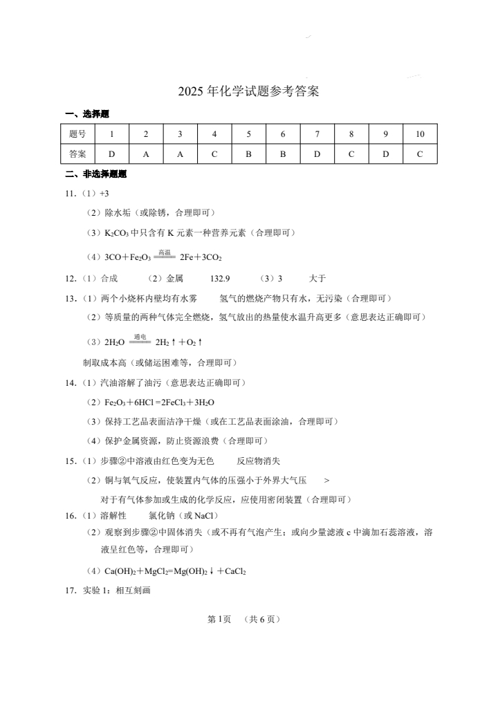 2025年河北石家莊中考一?;瘜W(xué)試卷(含答案)(初三試卷分析 初一初二家長收藏)